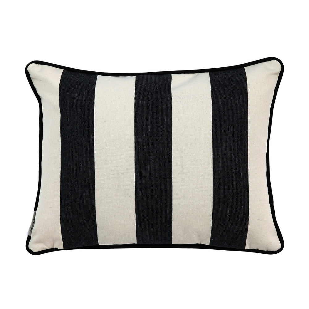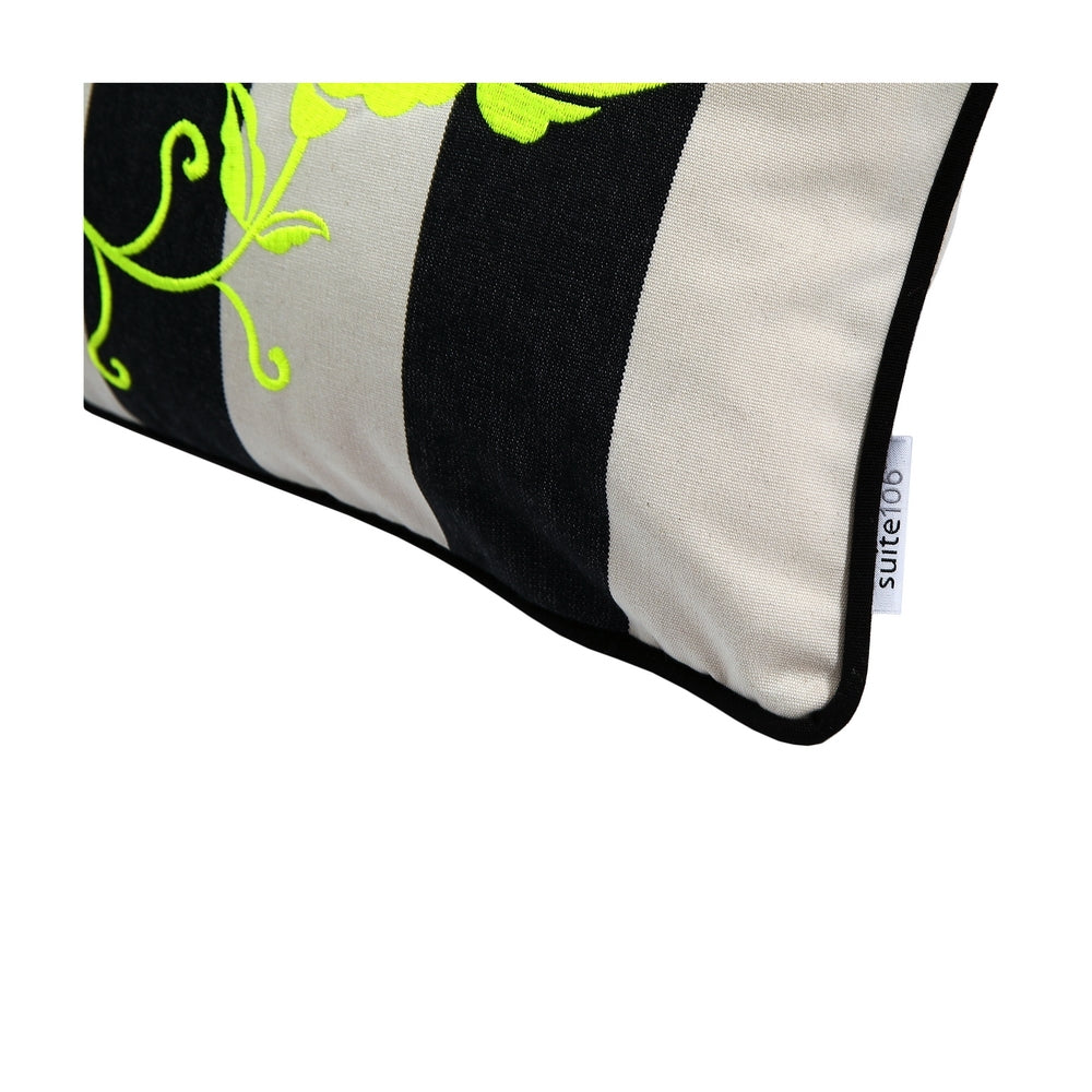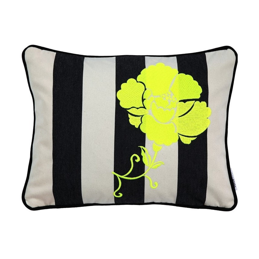 The Blossom pillow features an high performance outdoor cotton embroidered gold or yellow fluo on black and white stripe pattern that exudes a classic modernity in an exaggerated scale with spontaneity and flair.
