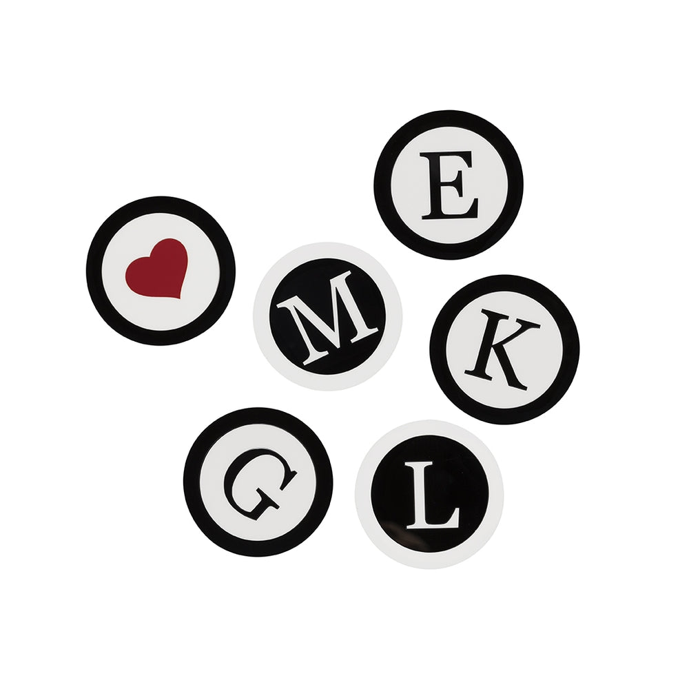 Acting not only as coasters but also as a place card, Letters are a perfect addition to any table setting or cocktail party.
