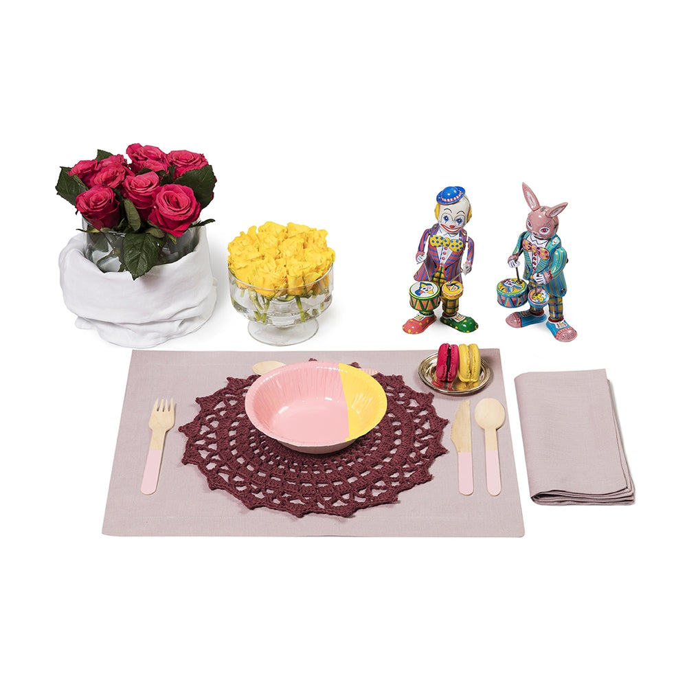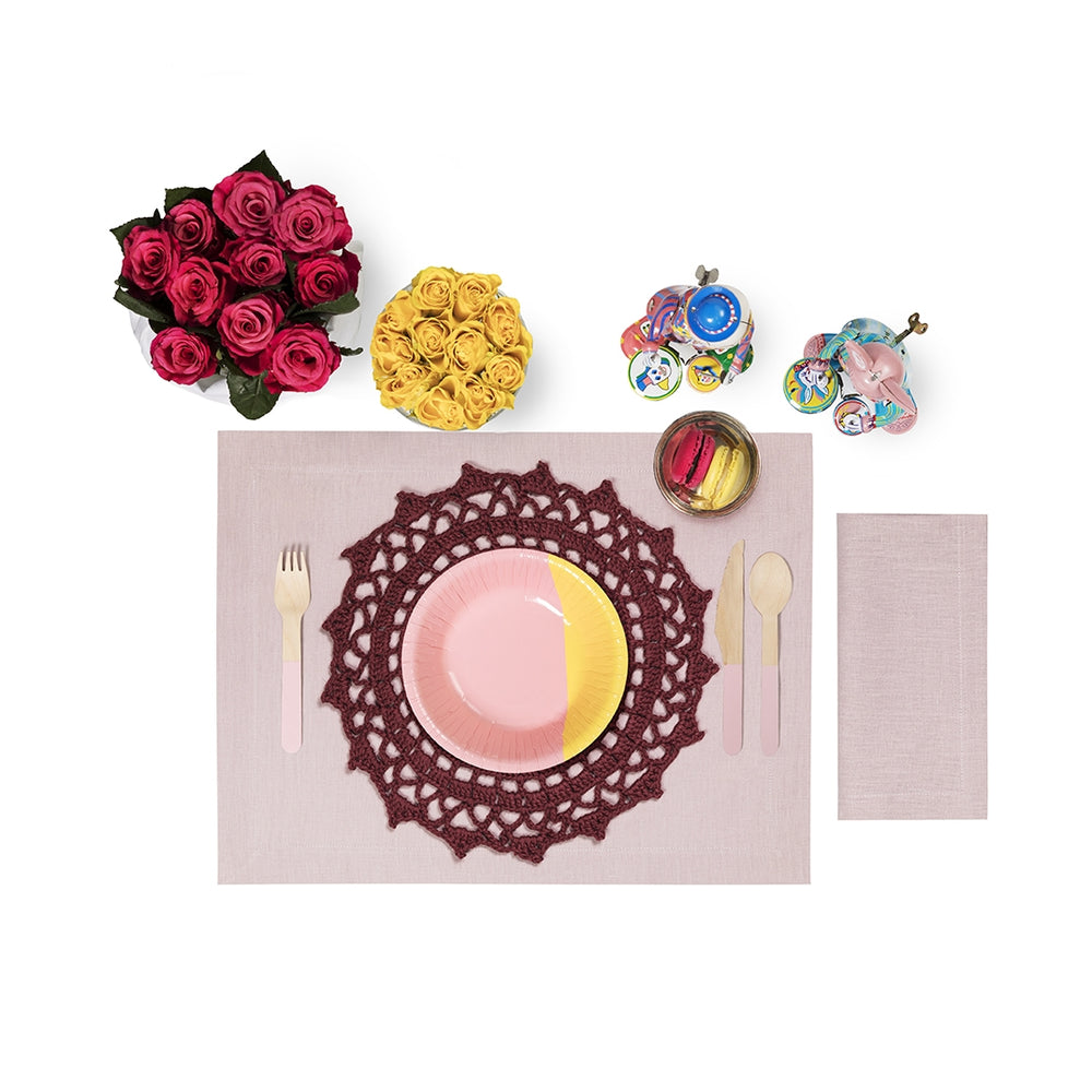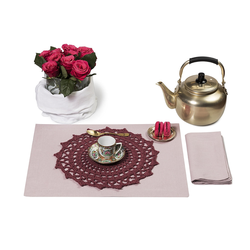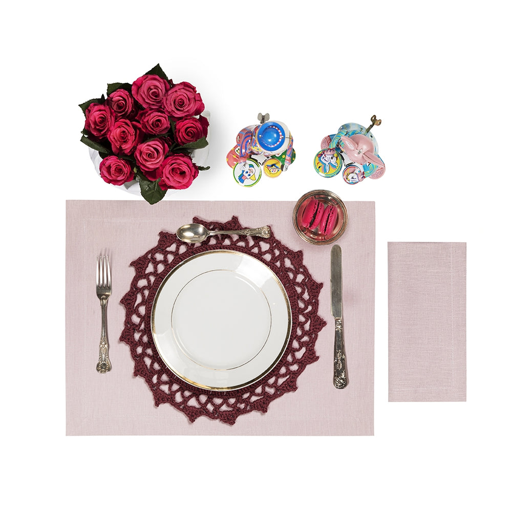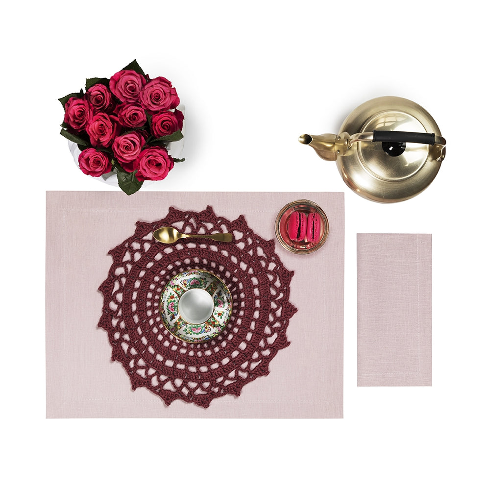 Fine pure linen placemats. Amazing dusty pink color. Hand Made in Italy and created with close attention to detail. Simple yet sophisticated, an artfully curated addition to any table, perfect for making an instant statement.