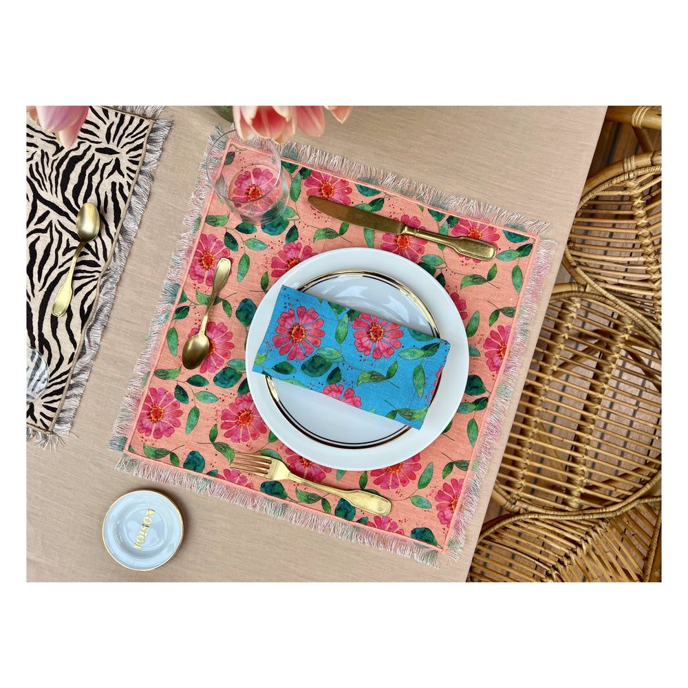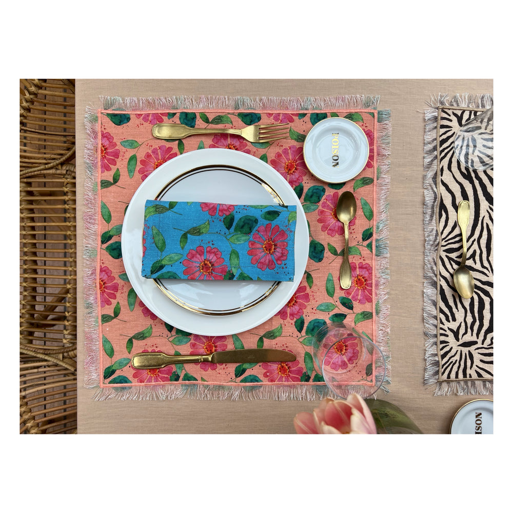 The Opi linen placemats with their exuberant elegance really add a chic touch to the table setting.