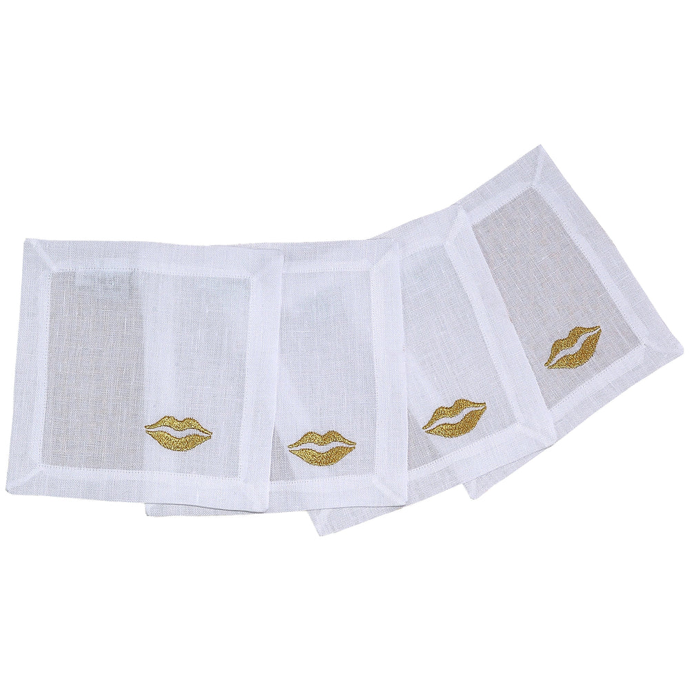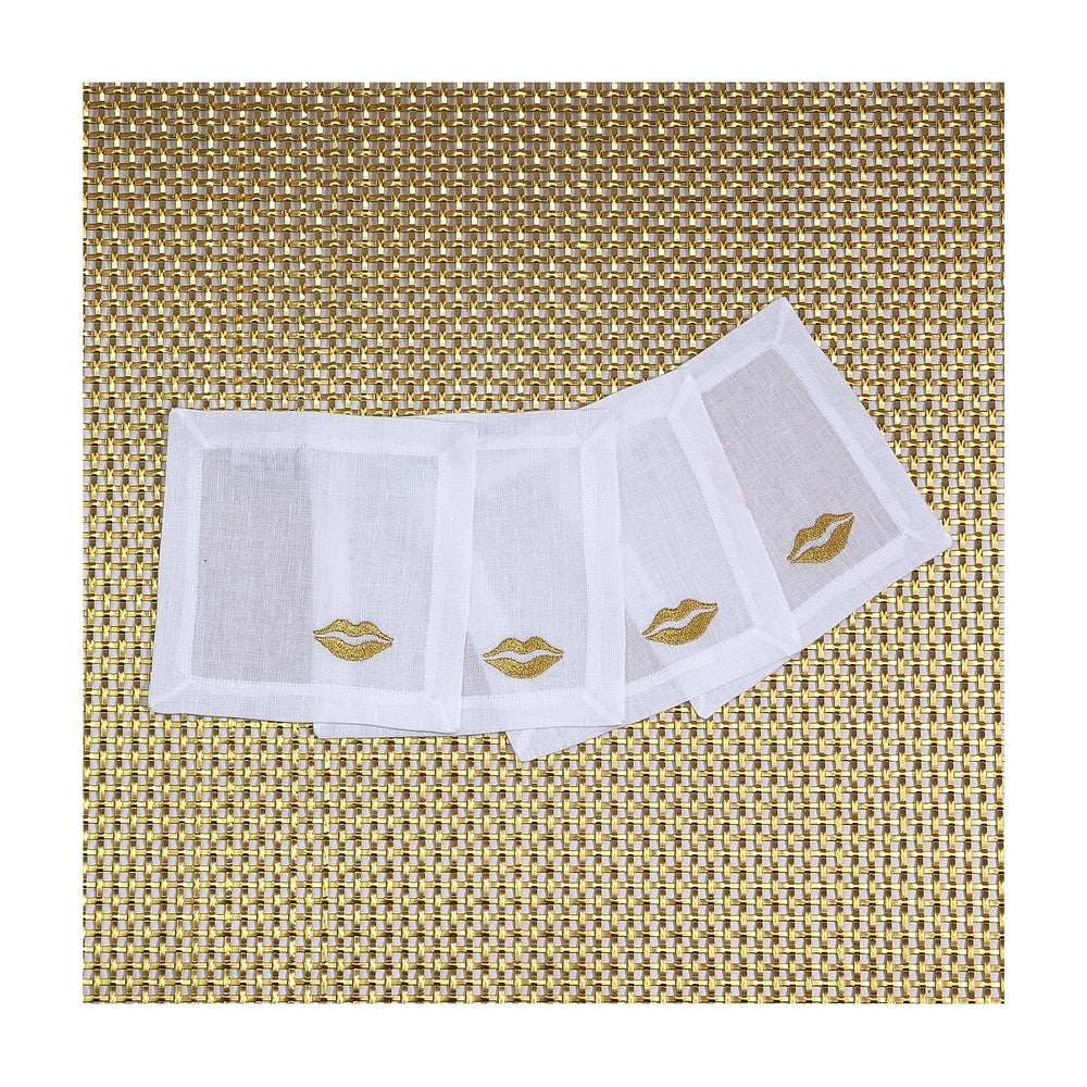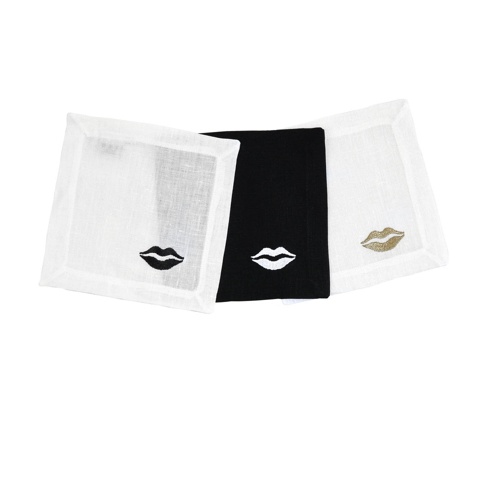 Embroidered fine linen napkins. A catchy detail for the classic tabletop, perfect for striking a conversation at any cocktail party.