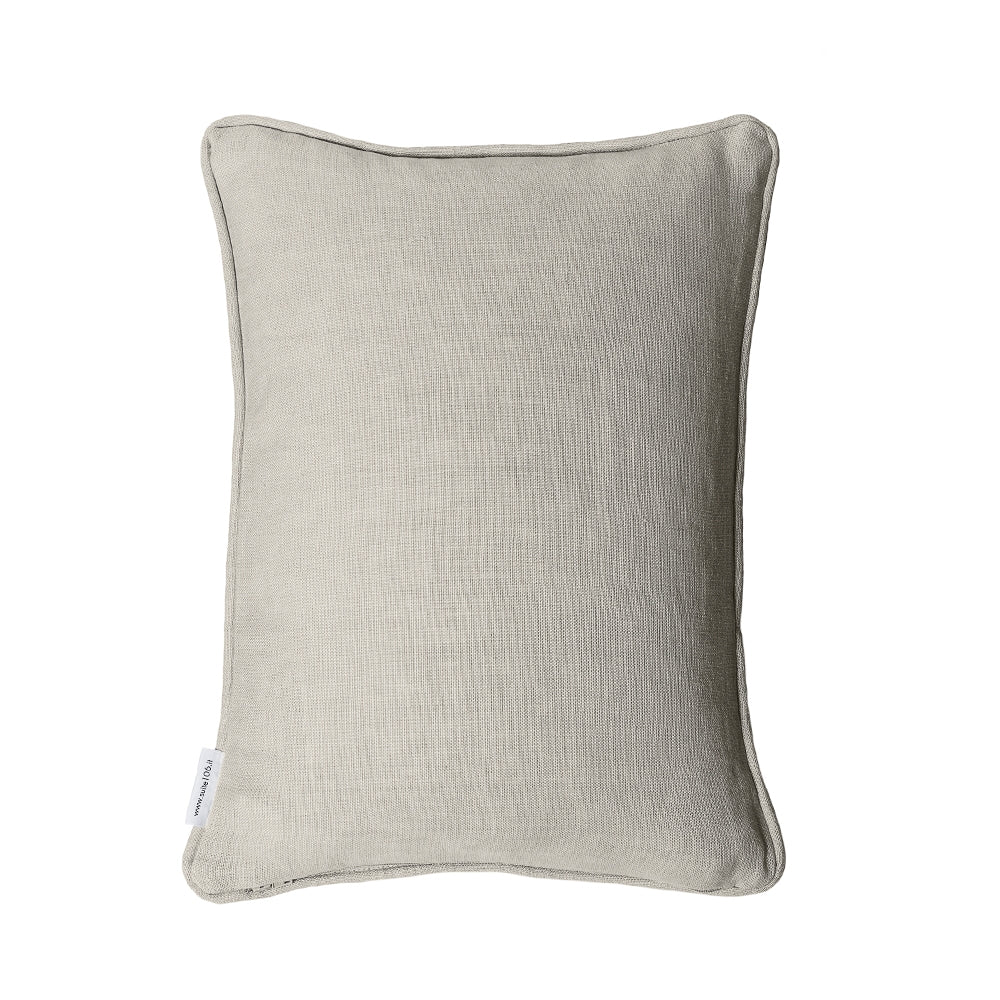 Printed on the front, solid beige color linen on the back, this pillow provides two looks for one.