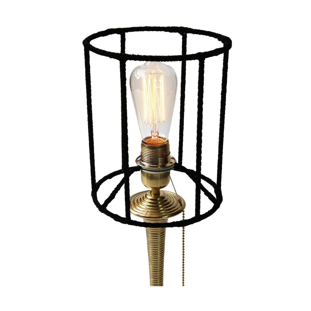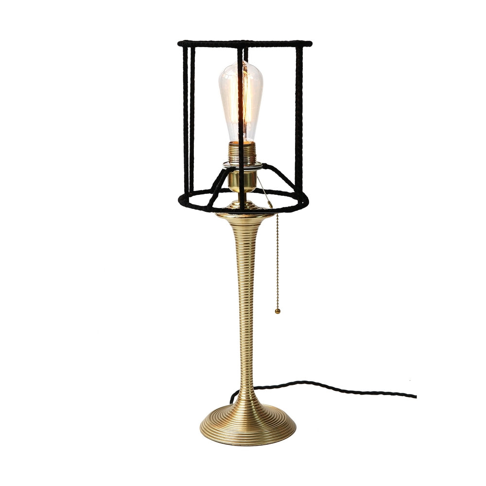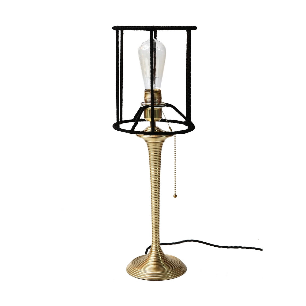 Featuring raw brass in a sculptural form, this lamp is born out of a love of architecture, and the interplay of light over form and material. The bulb inside the velvet frame lampshade diffuses a soft light, adding delicate texture and a rich sense of depth to any space.
