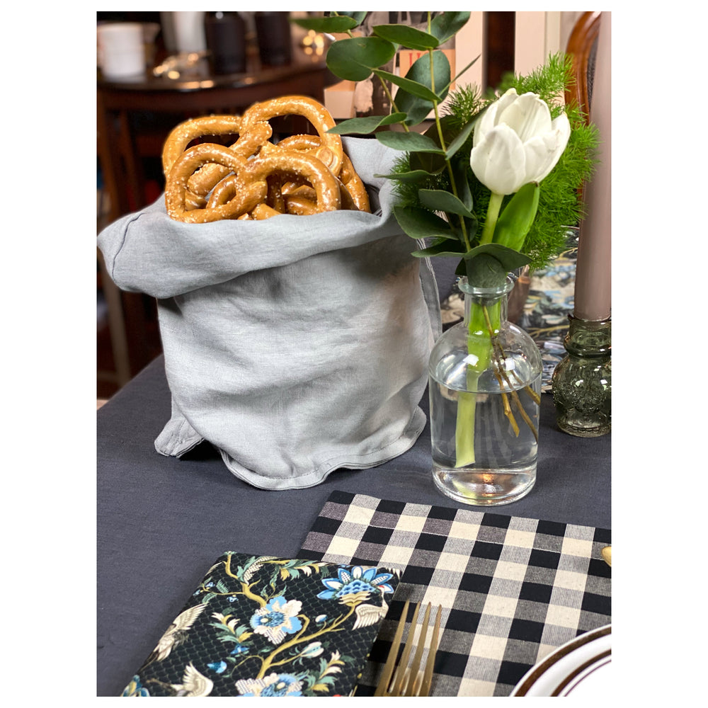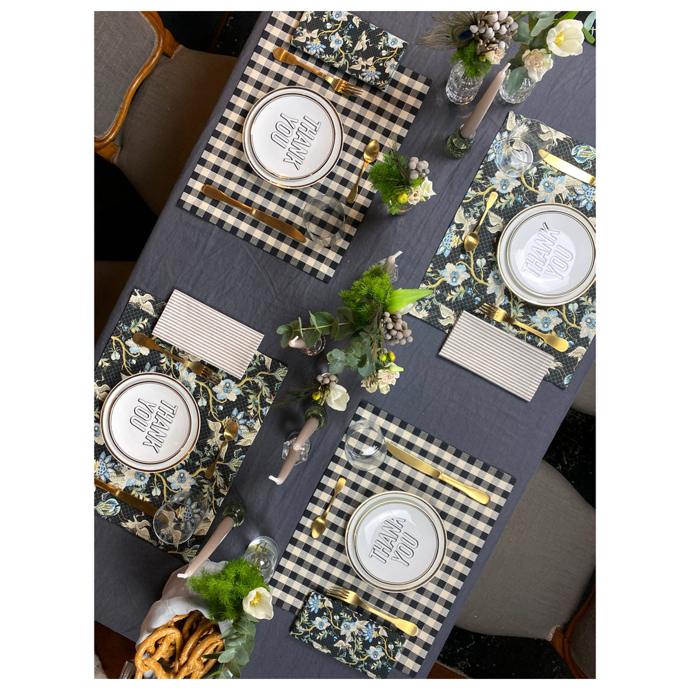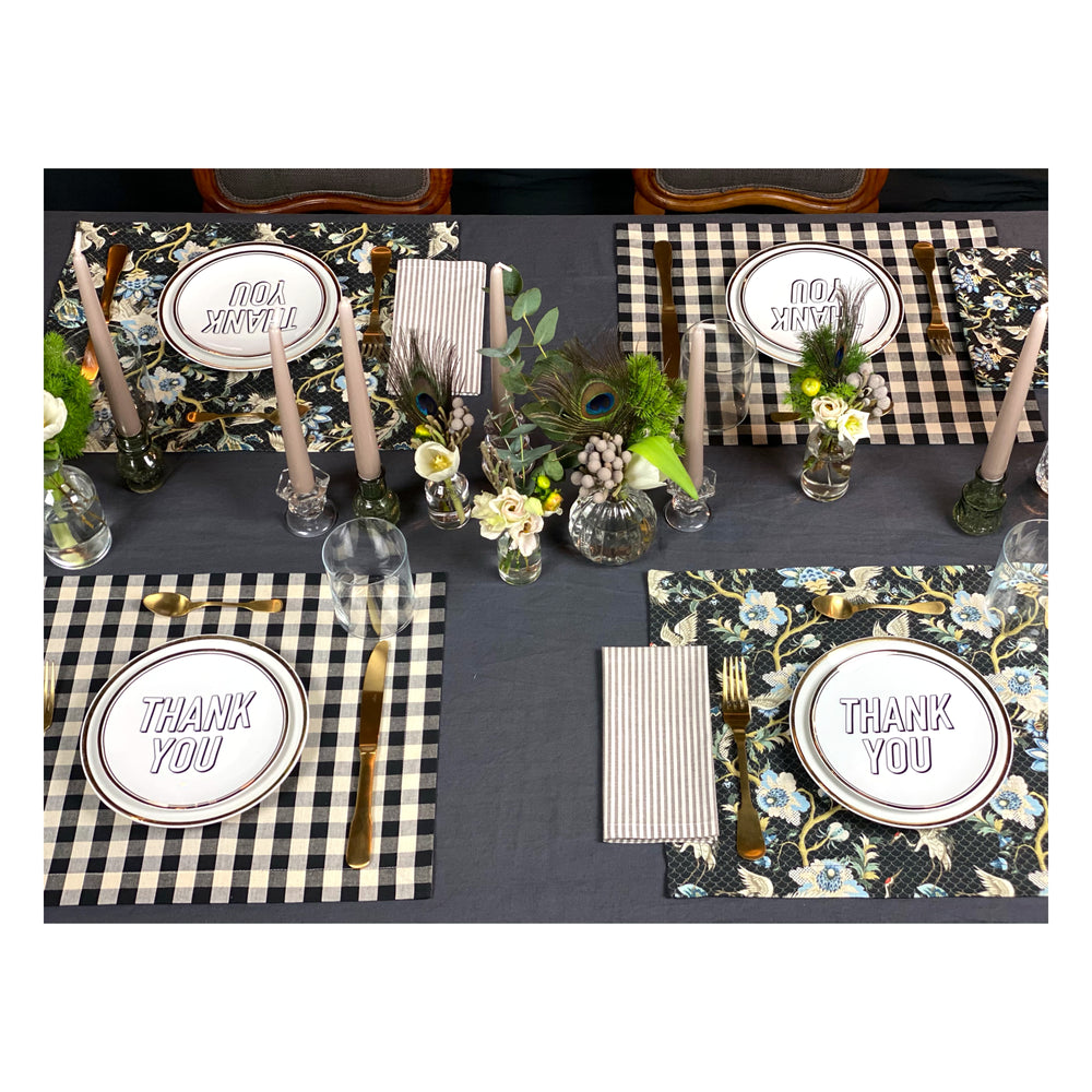 To shop the whole look, you can add our Meg Linen Tablecloth in dark grey colorThank You Plates & Gold Mat Cutlery to your basket.