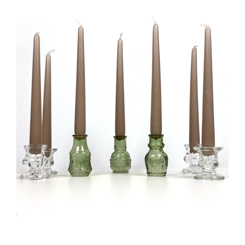 • x1 Small Green Glass Candlestick Holders/Little Vases Set of 3