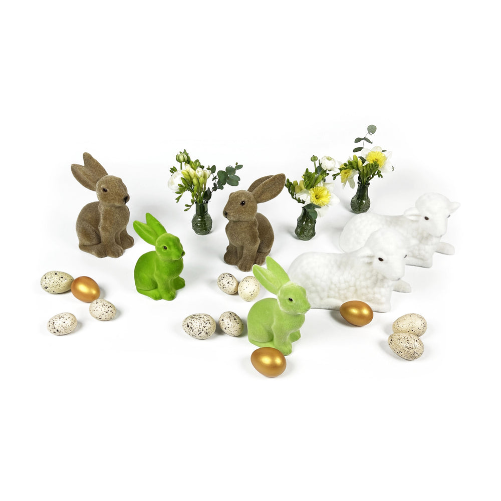 • x2 Medium Green Flocked Rabbit (15 cm)