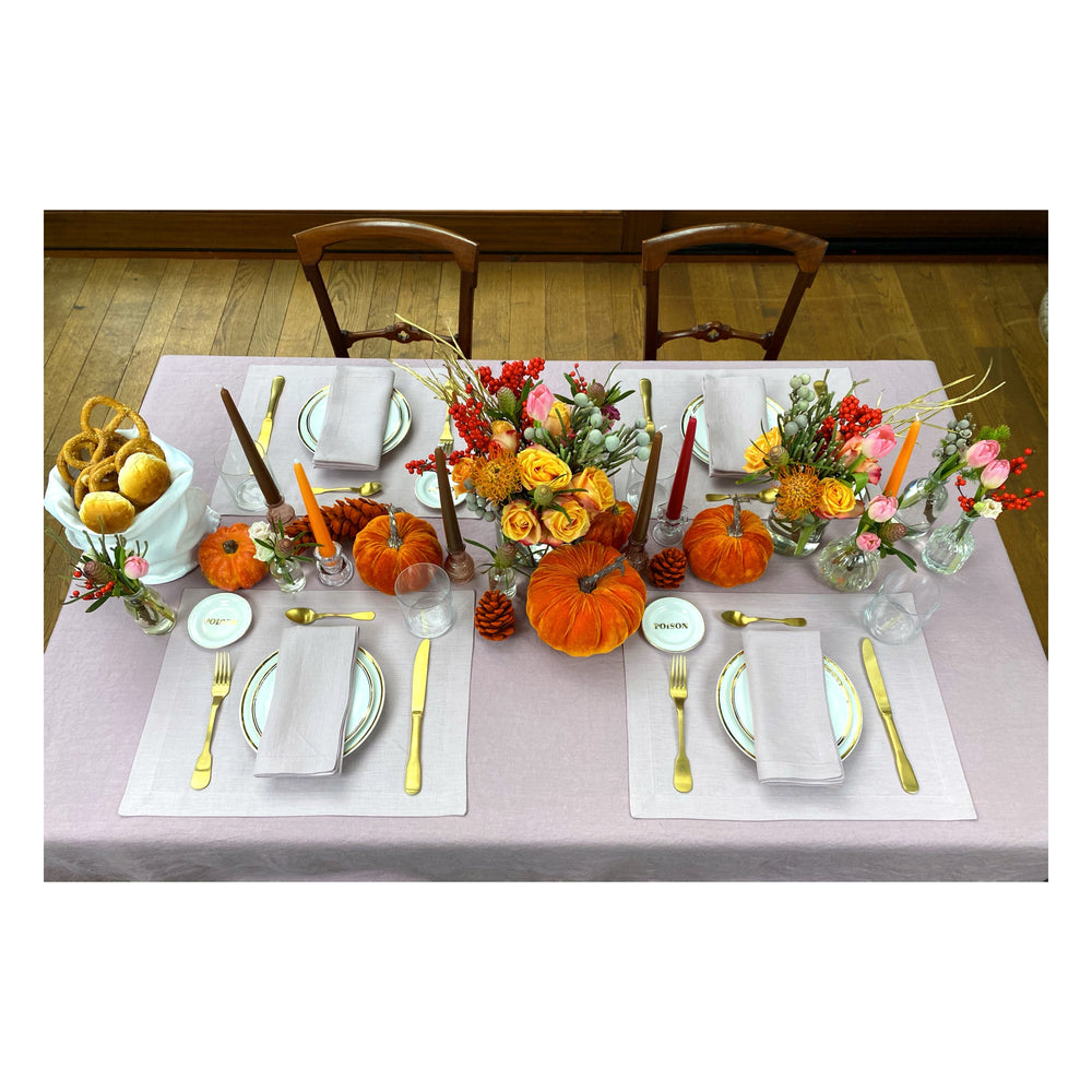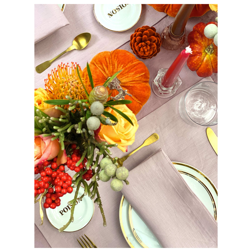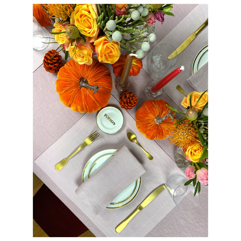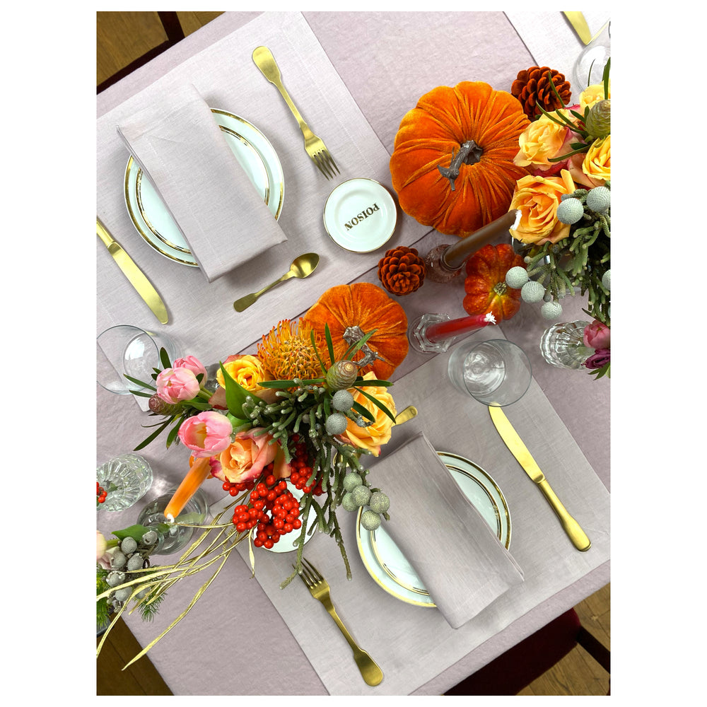 To shop the whole look, you can add our Meg Linen Tablecloth in the dusty pink color, Thank You Plates, Poison Little Plate & Gold Mat Cutlery to your basket.