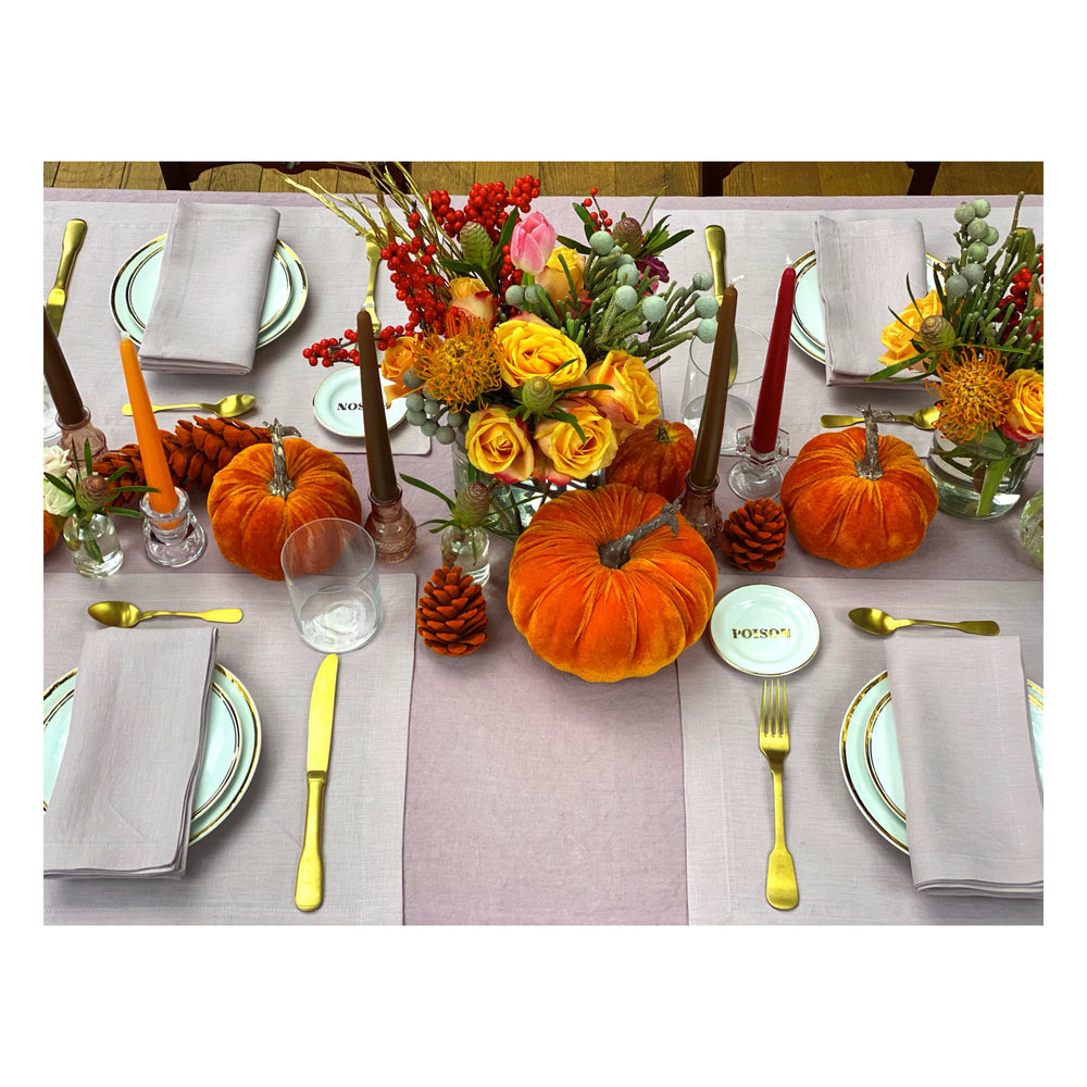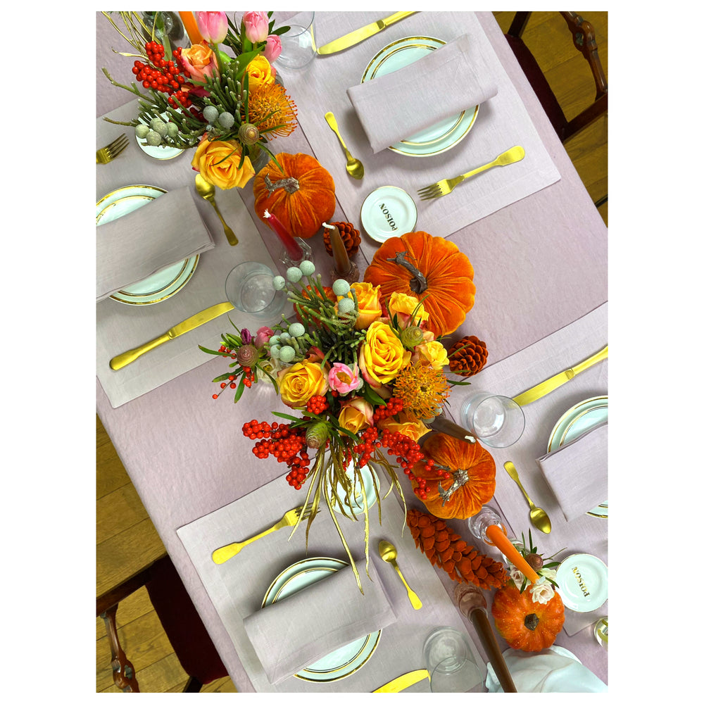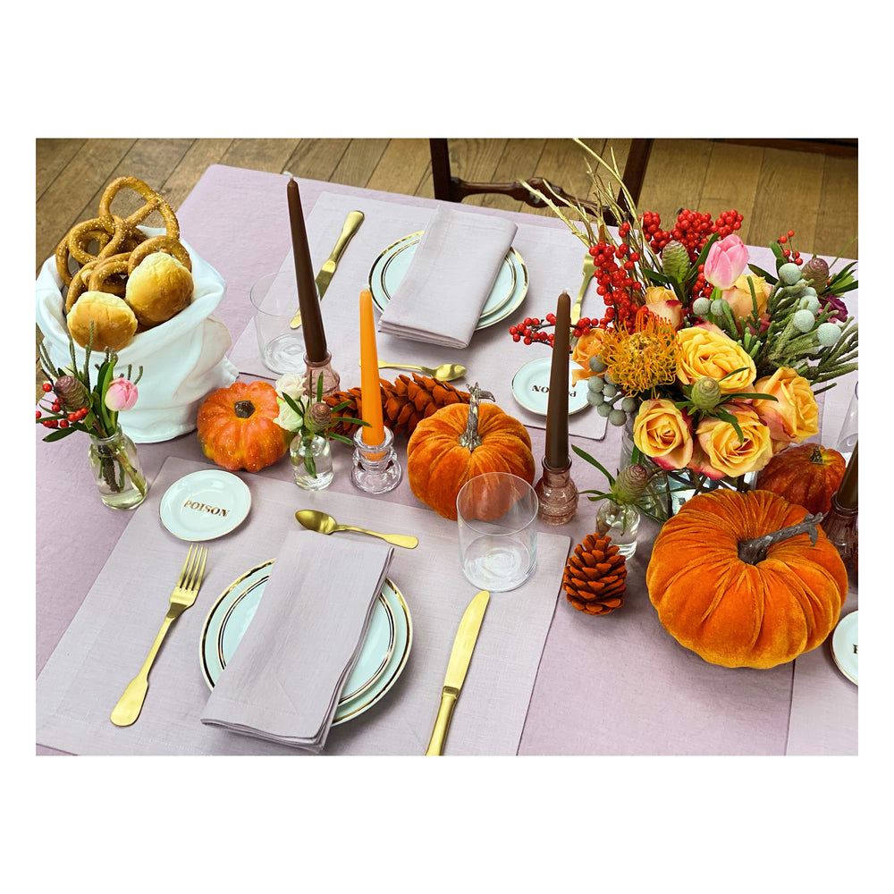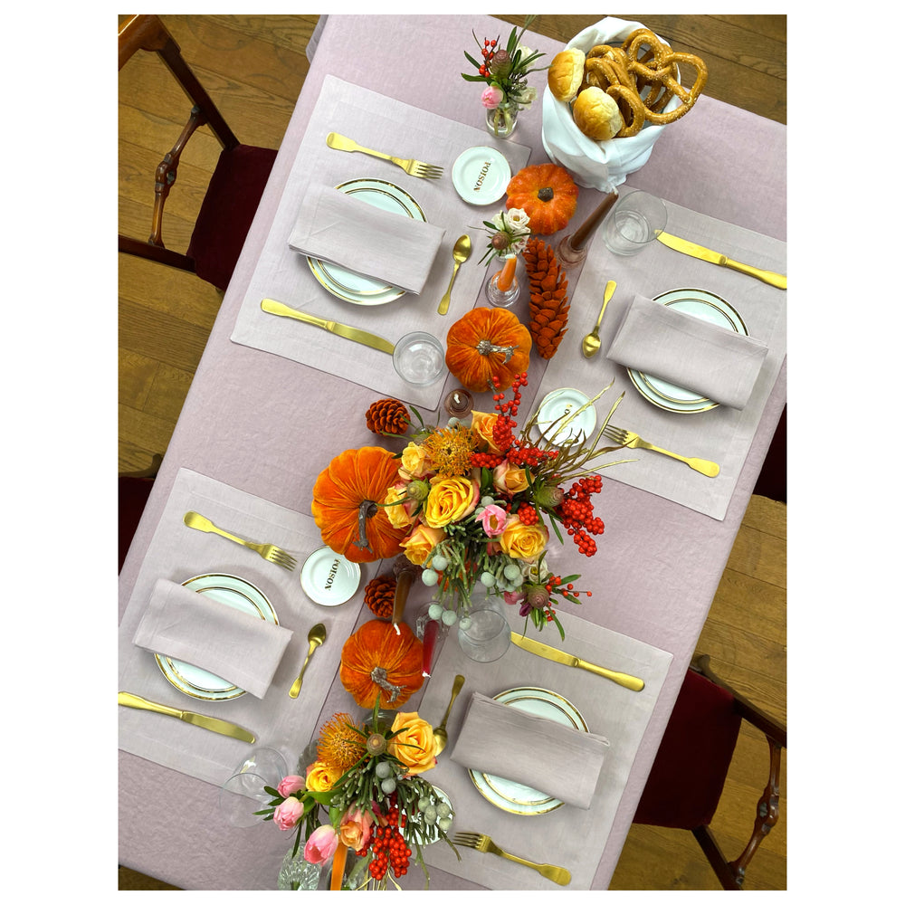 To shop the whole look, you can add our Meg Linen Tablecloth in the dusty pink color, Thank You Plates, Poison Little Plate & Gold Mat Cutlery to your basket.
