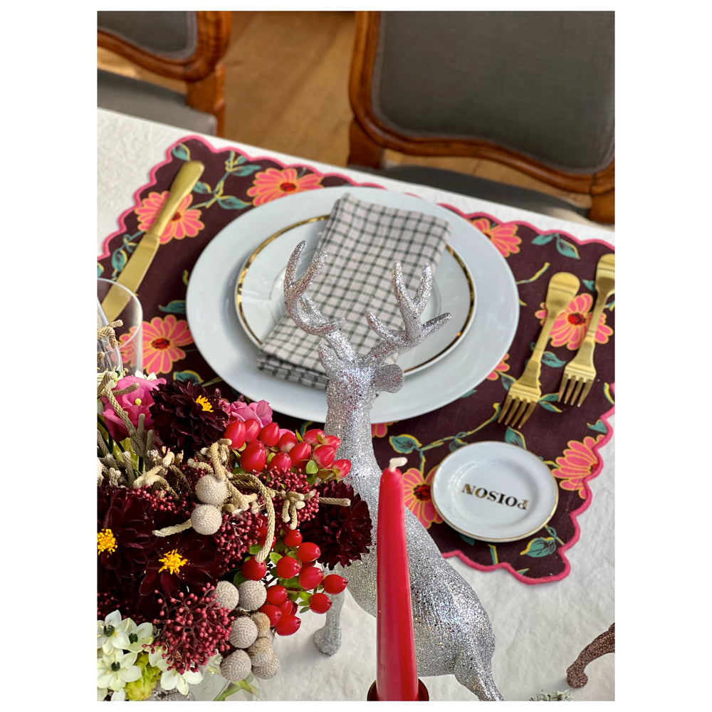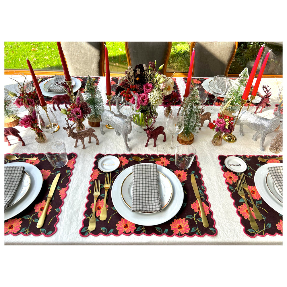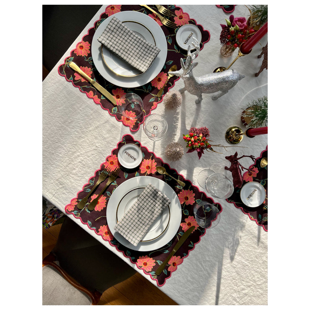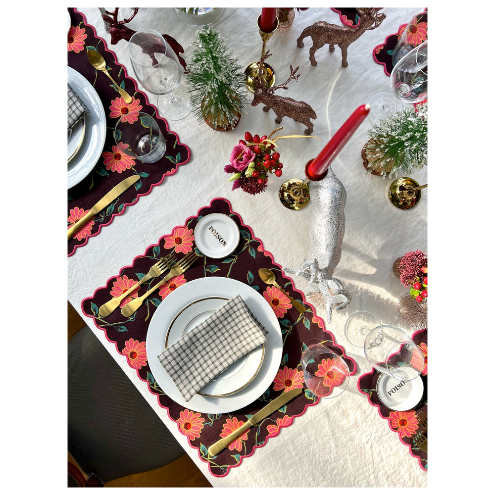 Belle placemats with their charming printed linen and scalloped borders embody a marriage of traditional beauty with contemporary chic. They really add a sophisticated touch to the table setting and work perfectly for a casual or formal setting.