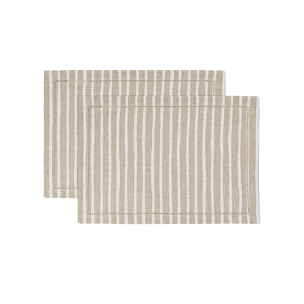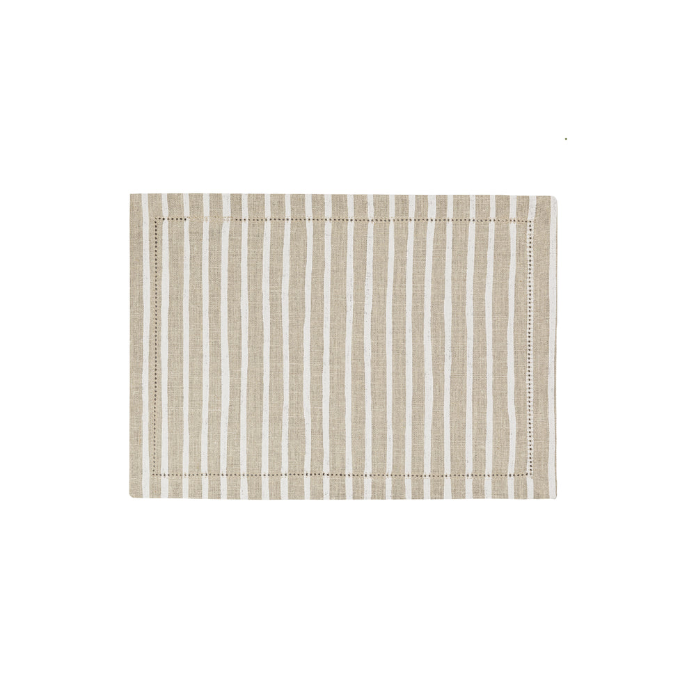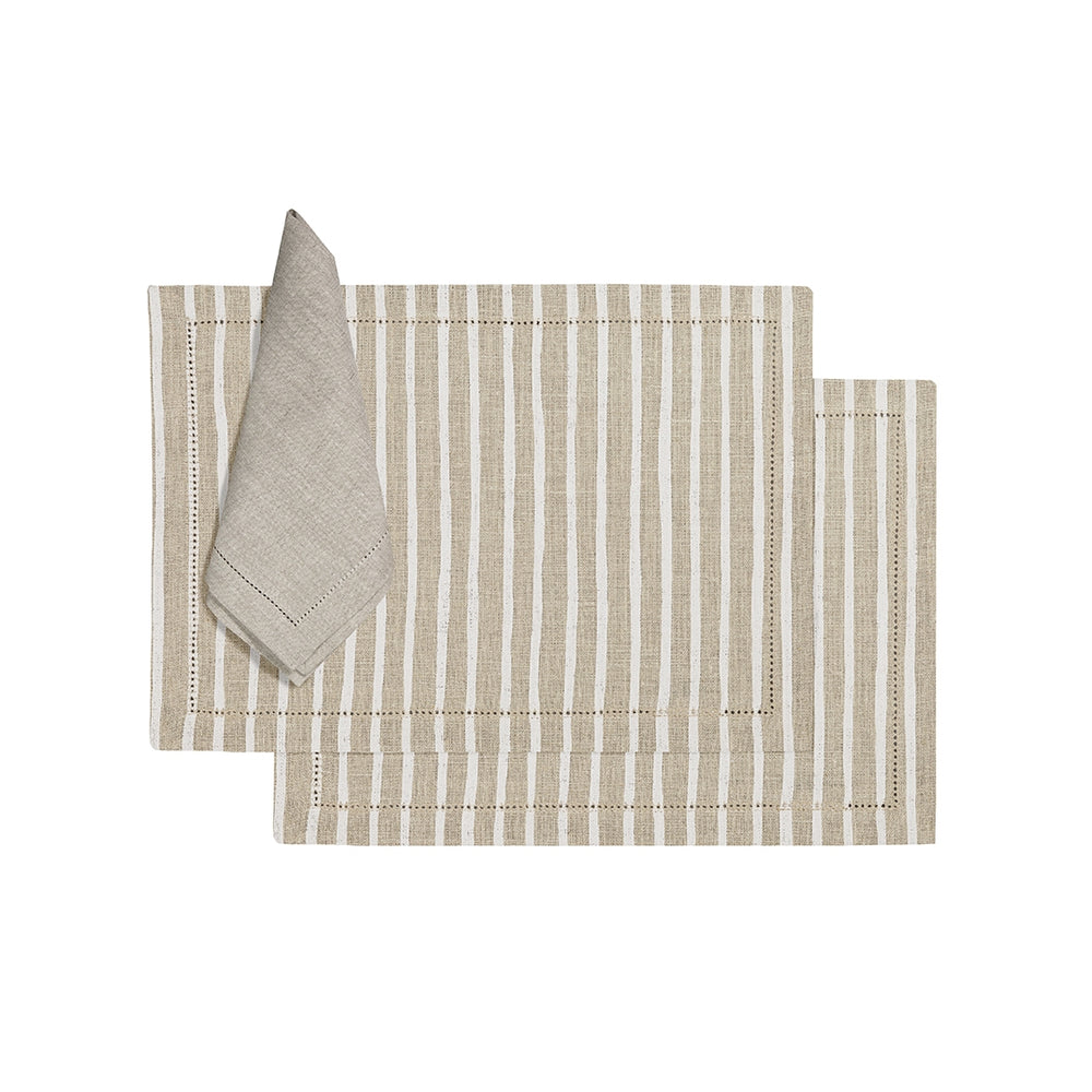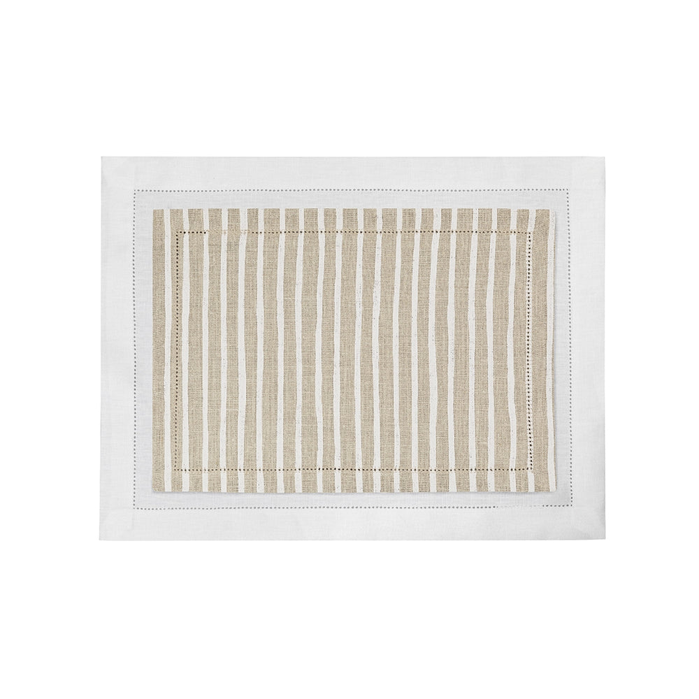 These beautiful breakfast placemats feature printed linen with hemstitch detailing.