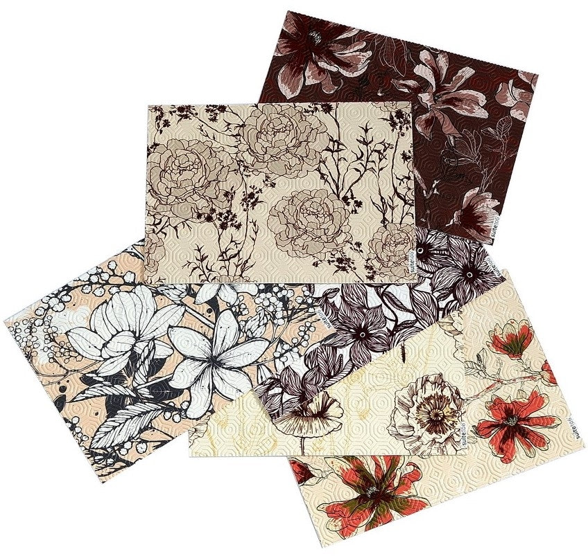 Made of printed vinyl and cotton table pad. Set of six different patterns.