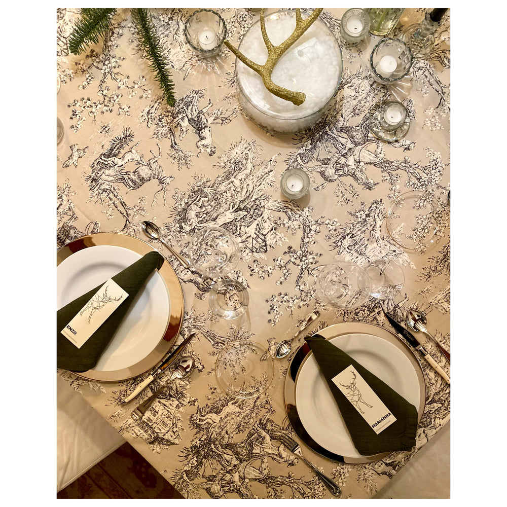 Add charm to the table with Toile De Jouy tablecloth. These elaborately patterned fabric claims a rich history almost as storied as the scenes it depicts and possesses the stylish appeal that constitutes a timeless classic.