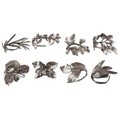 Basil, Mint, Rosemary, Thyme, Laurel, Oregano, Sage and Parsley are the 8 herbs that Suite106 offers for your table with this refined set of napkin rings.